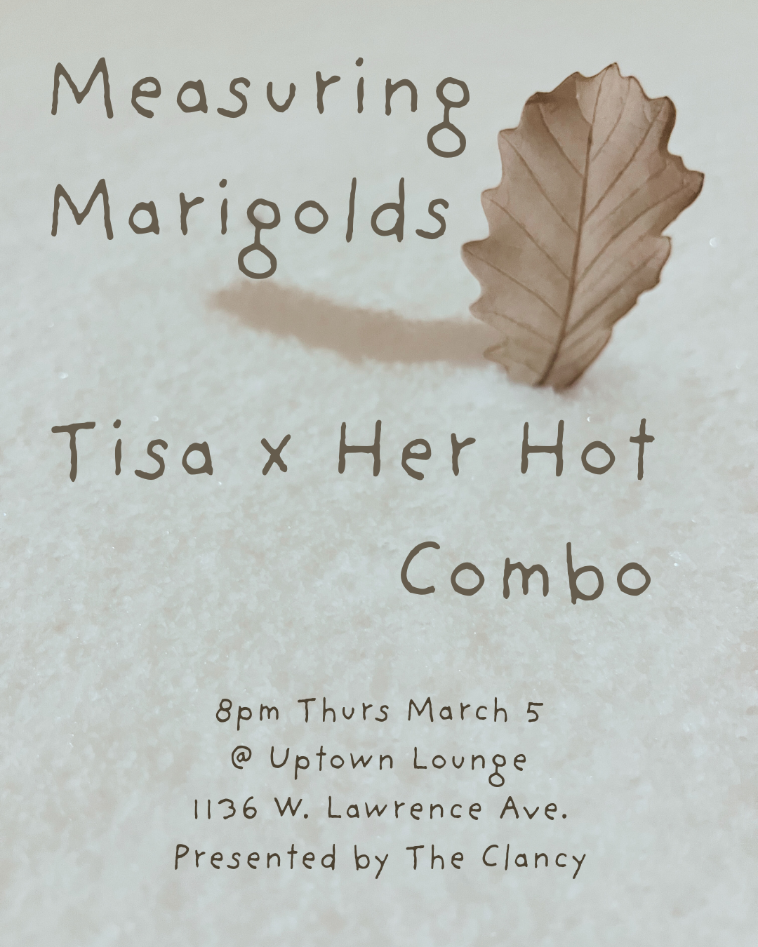 The occasion: the first full-band show of the project's current iteration is coming up next weekâwe'll be taking the stage after Tisa x Her Hot Combo (another Old Town School teacher!) at Uptown Lounge on Thursday March 5. Show at 8, no cover but donations appreciated ;).